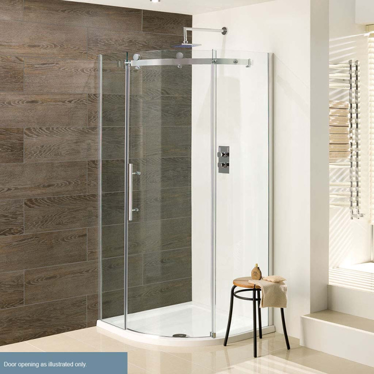 A luxurious, easy to clean enclosure with a distinctive top roller mechanism making a bold statement in your bathroom. In 10mm tempered safety glass with easy clean finish. Comes with 10 year manufacturers guarantee, with a range of trays to match.