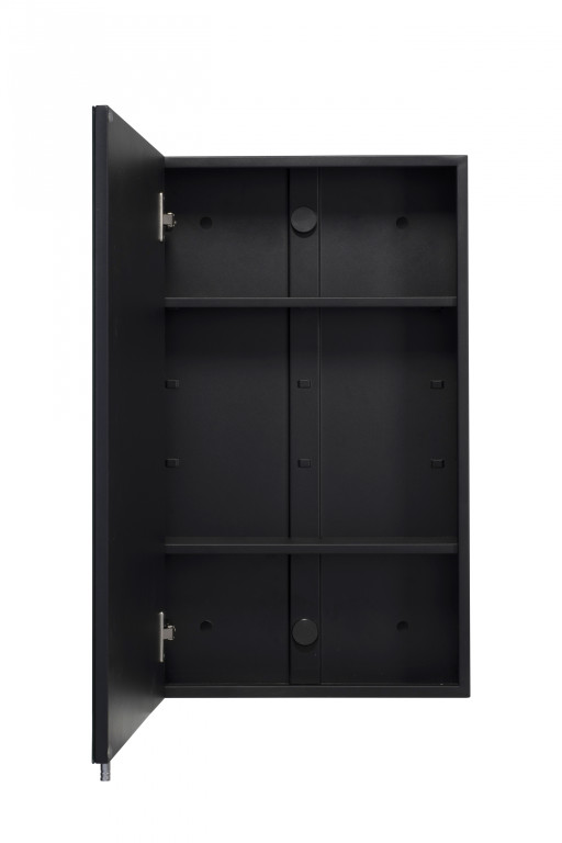 Supplied fully assembled, it is also easy incredibly easy to install with the Flexi-FixTM Always Level easy installation system, ,meaning a single person installation is possible and your cabinet will always be level.- Matt black steel cabinet with mirrored door