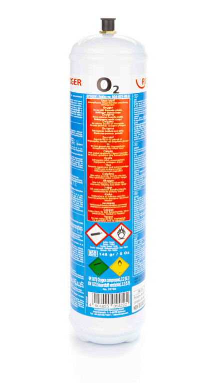 A mobile version of Rothenberger's two-litre oxygen cylinder, the Rothenberger 35750 110 bar Oxygen Cylinder is a disposable 110 bar oxygen canister ideal for use with portable gas welding and brazing instruments in Rothenberger’s ALLGAS Mobile or Roxy Kits.