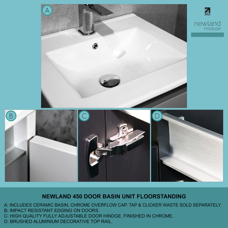 Newland 600mm Freestanding Double Door Basin Unit Including Ceramic Basin - Midnight Mist