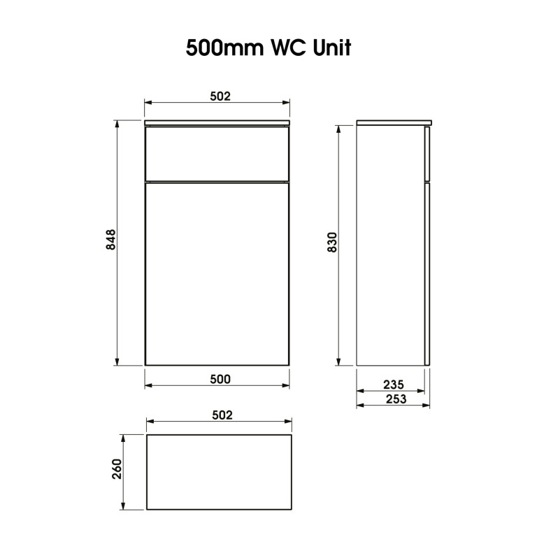 Newland 500mm WC Unit Including Worktop, (No Cistern) - White Gloss