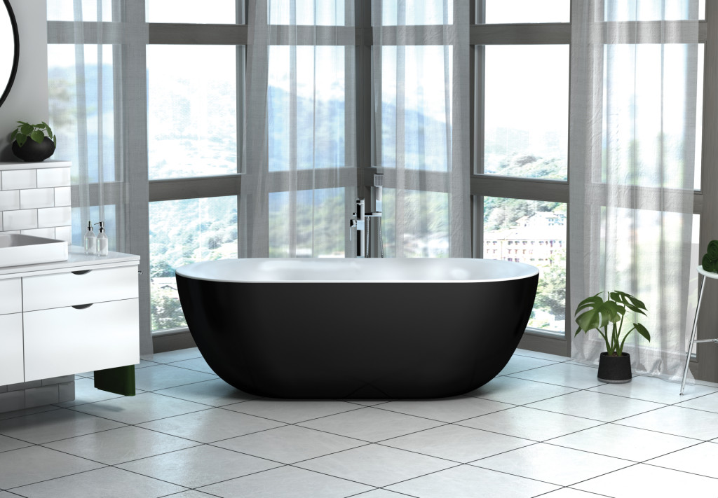Knightsbridge Matt Black Bath Including Waste 1500 x 780mm