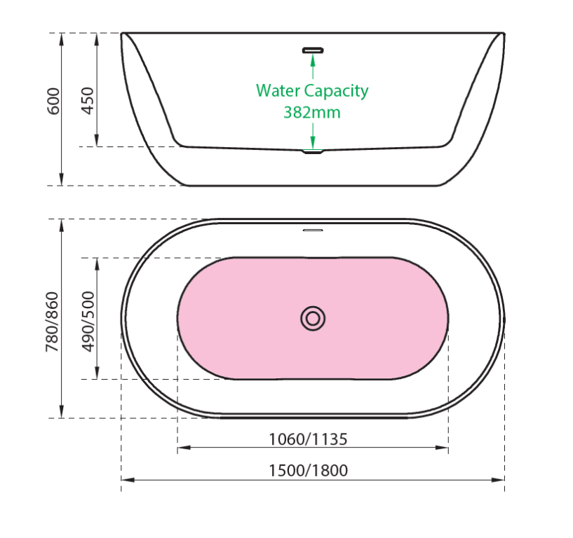Knightsbridge Matt Black Bath Including Waste 1500 x 780mm