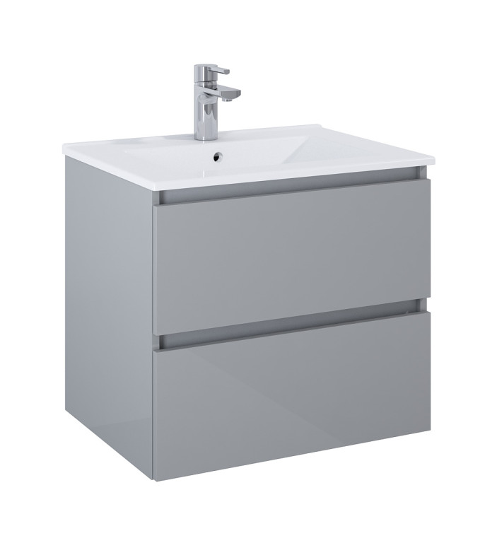 Sussex 60cm 2 Drawer Wall Hung Basin Unit Light Grey Gloss