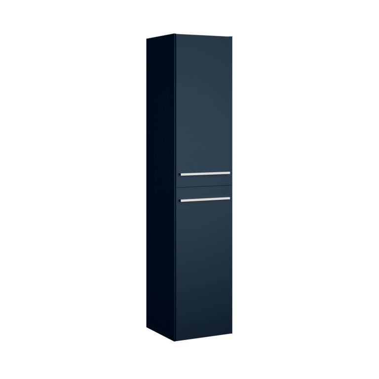 The Berwick wall unit is a versatile and stylish companion to the Berwick vanity unit. Its design is characterised by sleek angled edges, a modern slim bar handle and two doors revealing one fixed central shelf and 3 glass shelves.