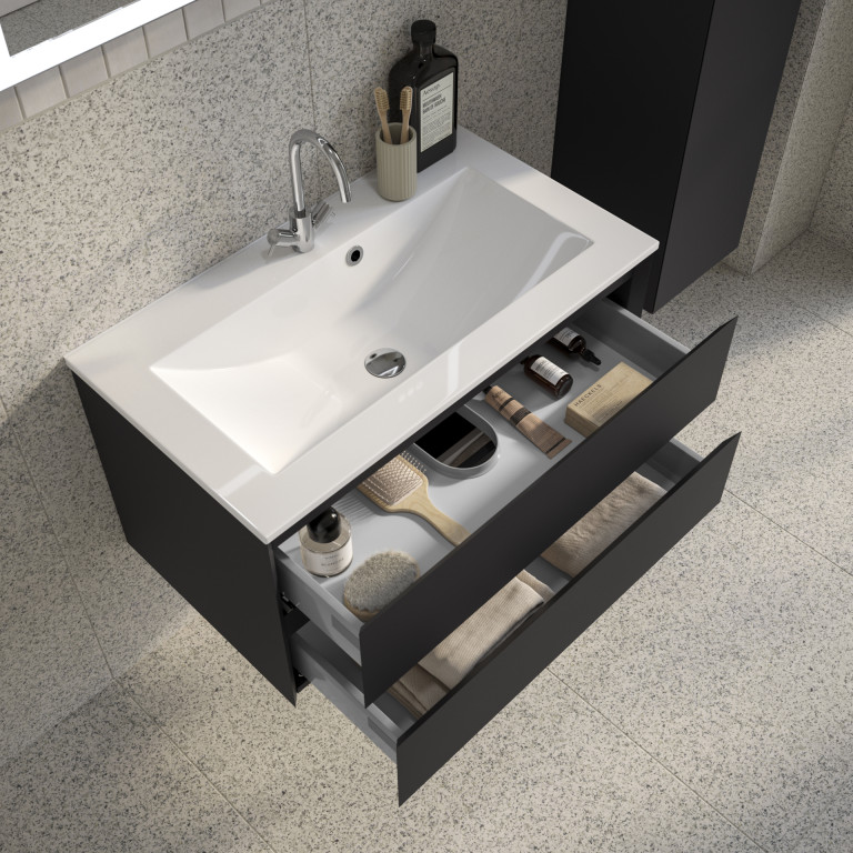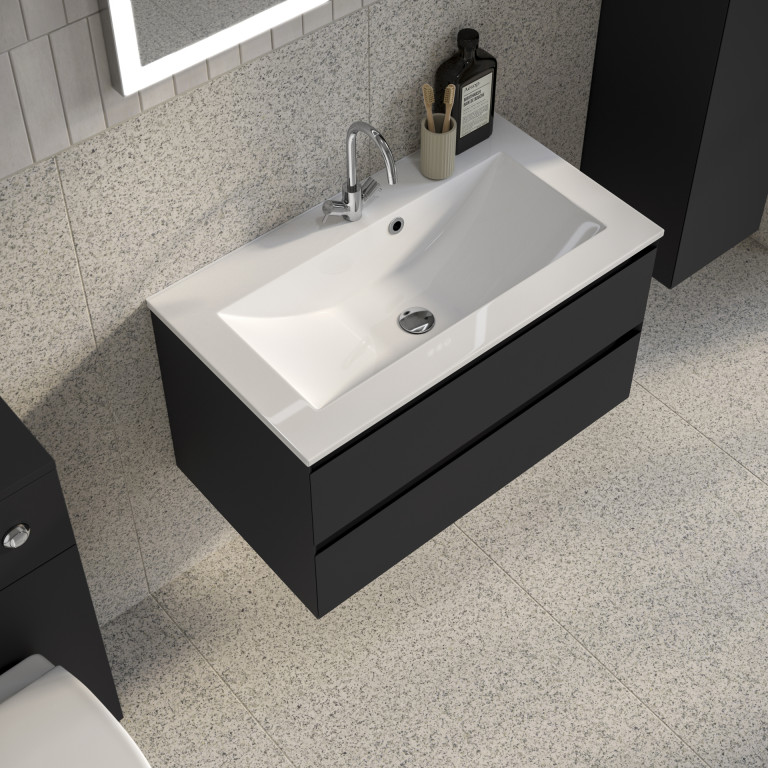 - Vernas 800mm two-drawer wall-hung vanity unit.
