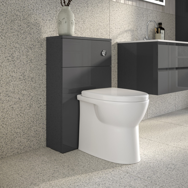 Vernas WC Unit 500mm with Cistern and Chrome Flush Button - White Gloss