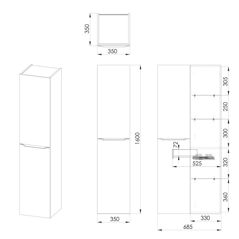 - Four internal shelves.