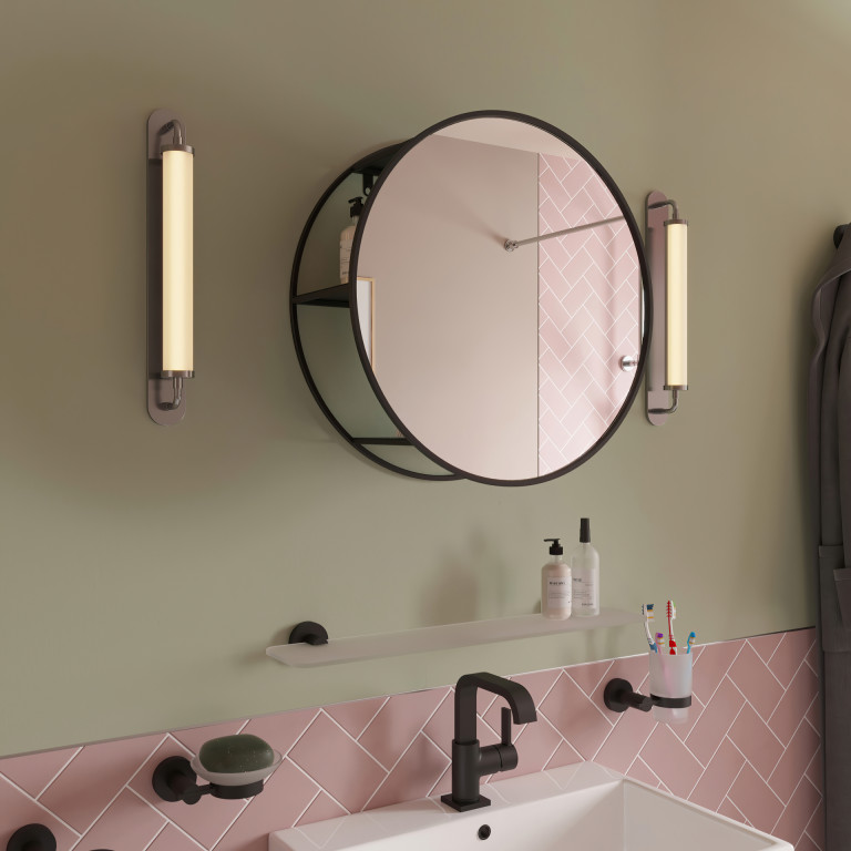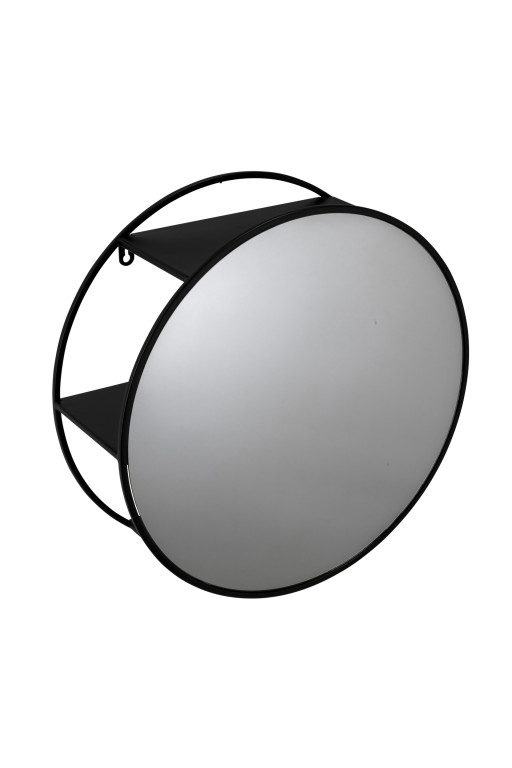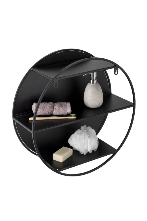 Offering an industrial take on a staple bathroom accessory, this circular mirror adds a simple but modern focal point to any room in the house. The matt black steel frame provides much-needed additional storage with three shelves, hidden behind the mirror, that are perfect for keeping cosmetics and toiletries close at hand. Easily installed with two fixing hooks on the back and all fixtures and fittings included, this 50cm mirror is the perfect finishing touch for your bathroom.