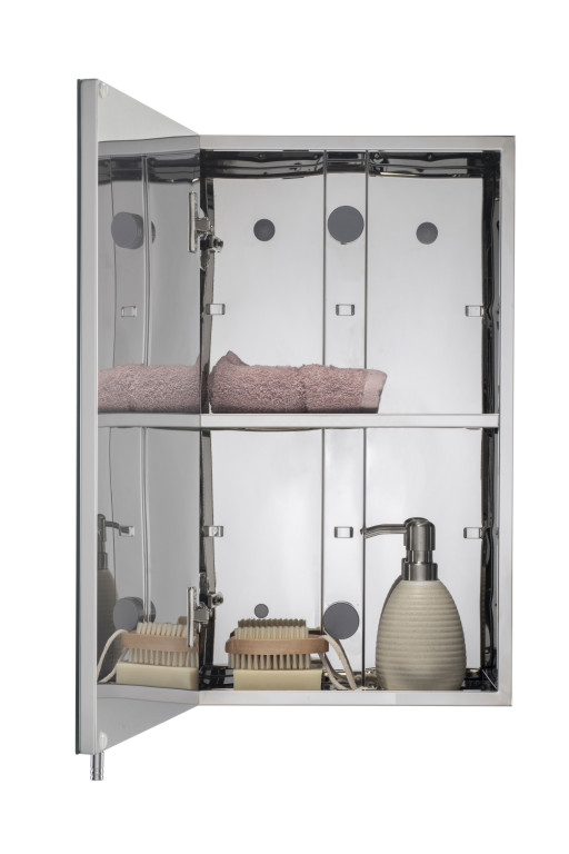 Supplied fully assembled, it is also easy incredibly easy to install.- Polished stainless steel cabinet with mirrored door