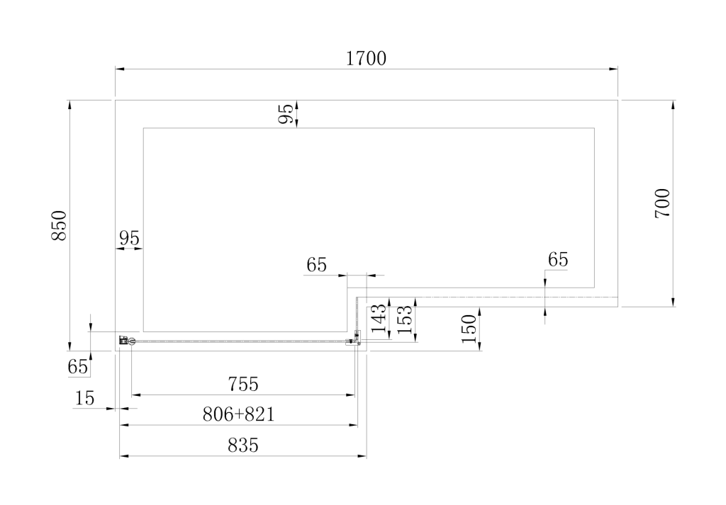 - 835mm (L) x 150mm (W) x 1400mm (H)