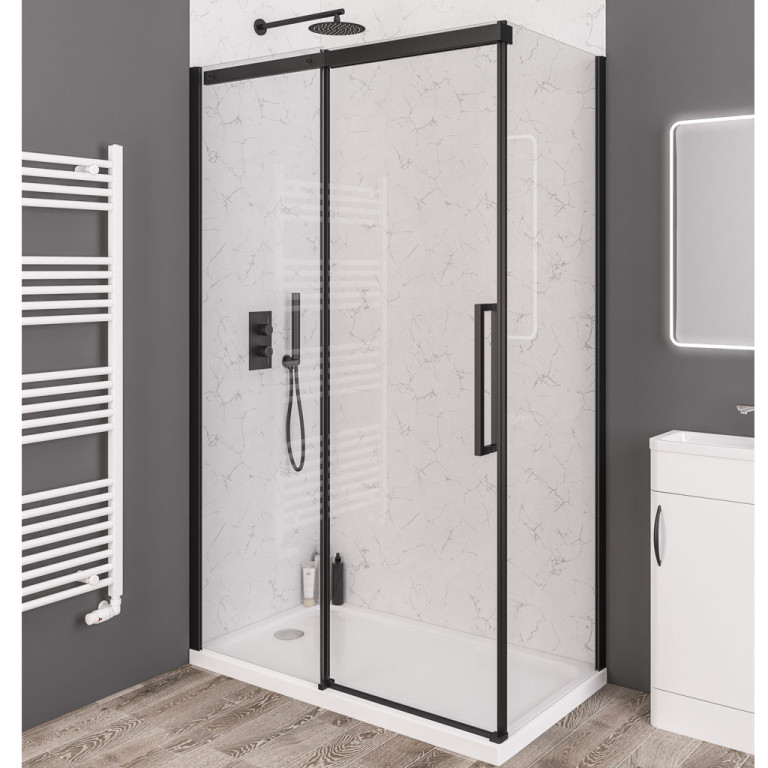 Corniche 2000x1100 8mm Semi-Frameless Sliding Shower Door - Matt Black