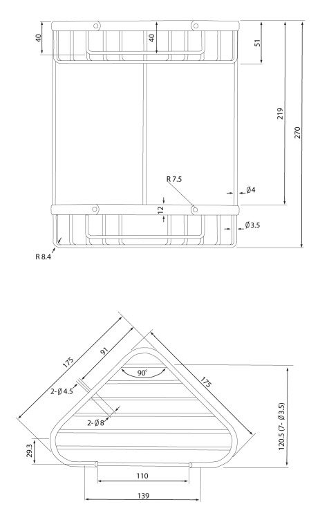 - 125mm (L) x 265mm (W) x 55mm (H)