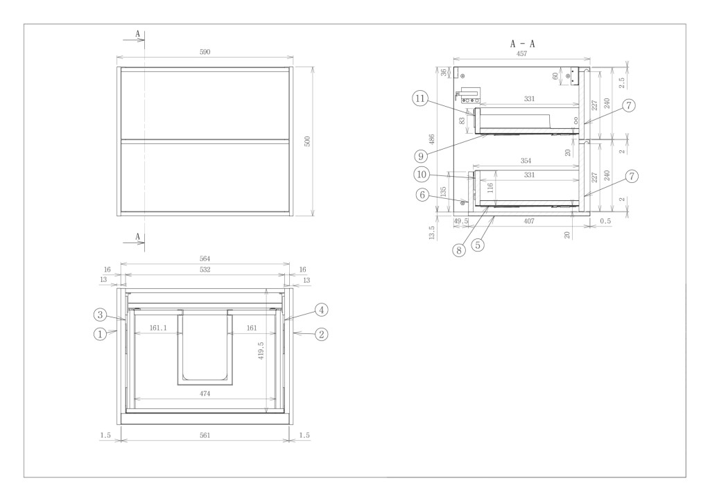- 457mm (L) x 590mm (W) x 500mm (H)
