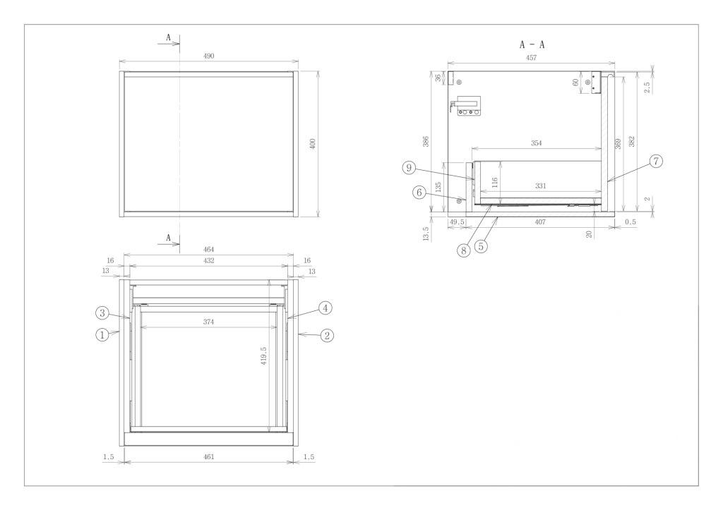 - 457mm (L) x 490mm (W) x 400mm (H)