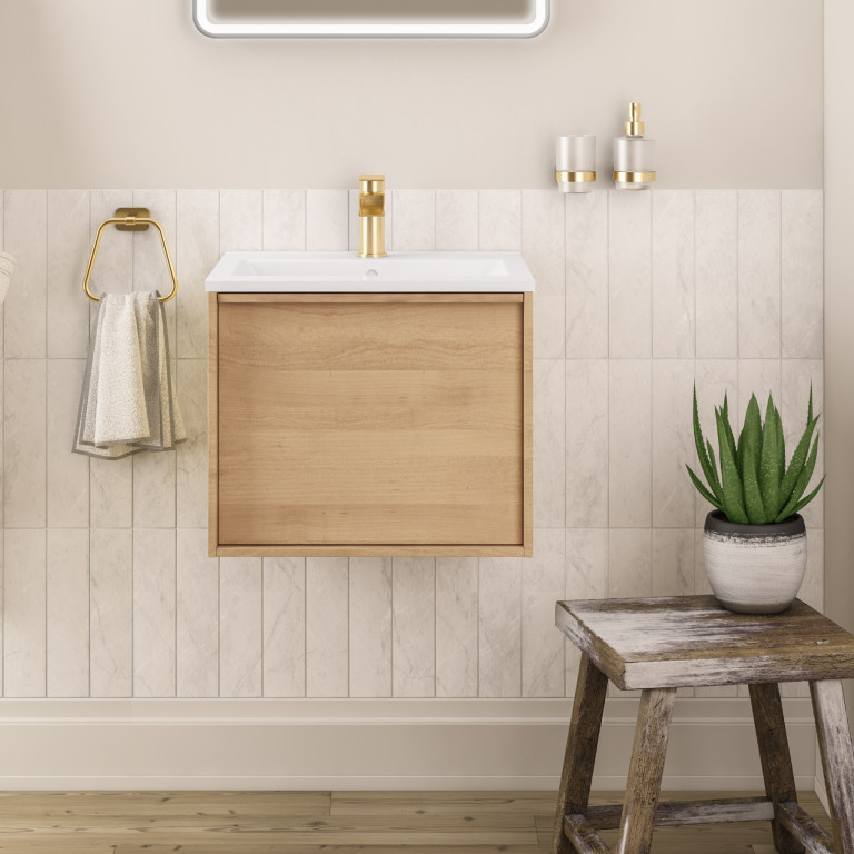 Ravensbourne 600 Wall Hung Drawer Unit only - Natural Oak (Basin & Tap Sold Separately)