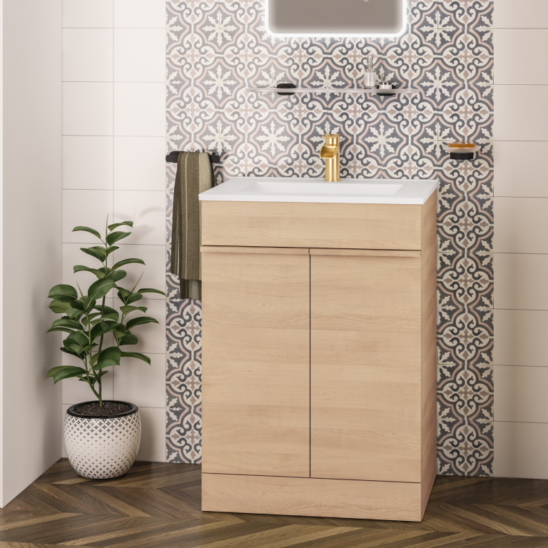 Ravensbourne 600 Wall Hung Drawer Unit only - Natural Oak (Basin & Tap Sold Separately)