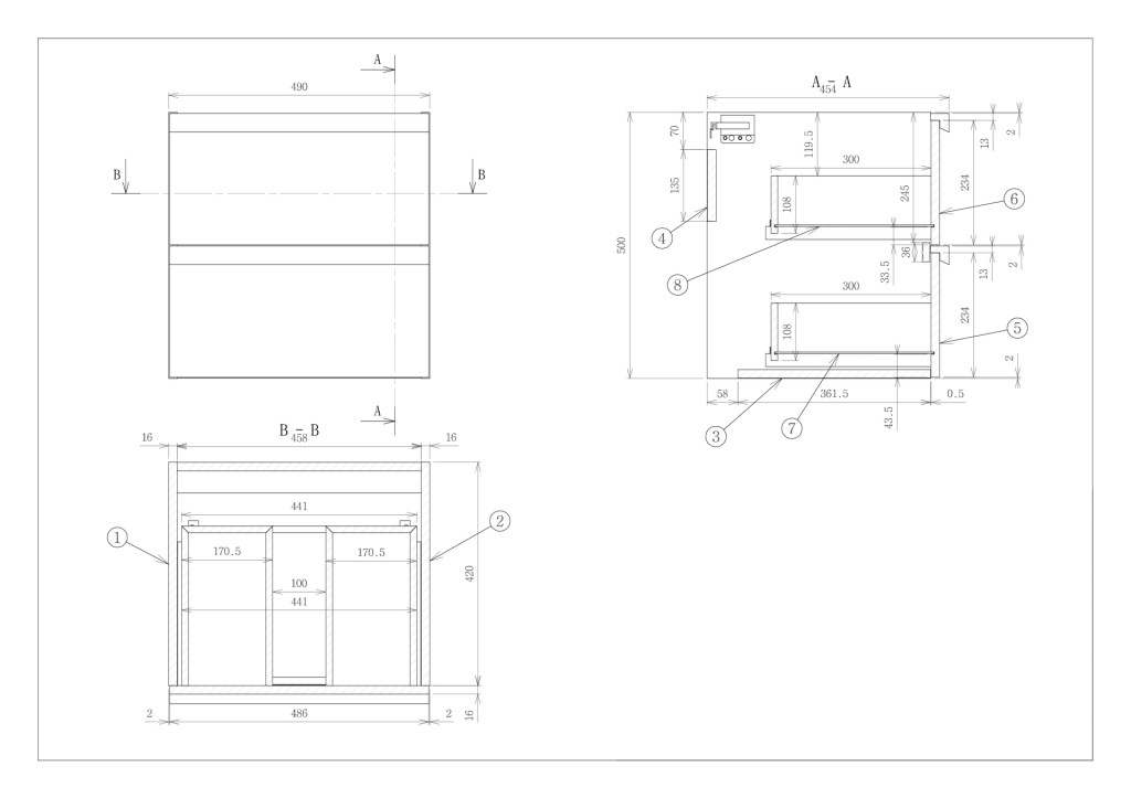 - 454mm (L) x 490mm (W) x 500mm (H)
