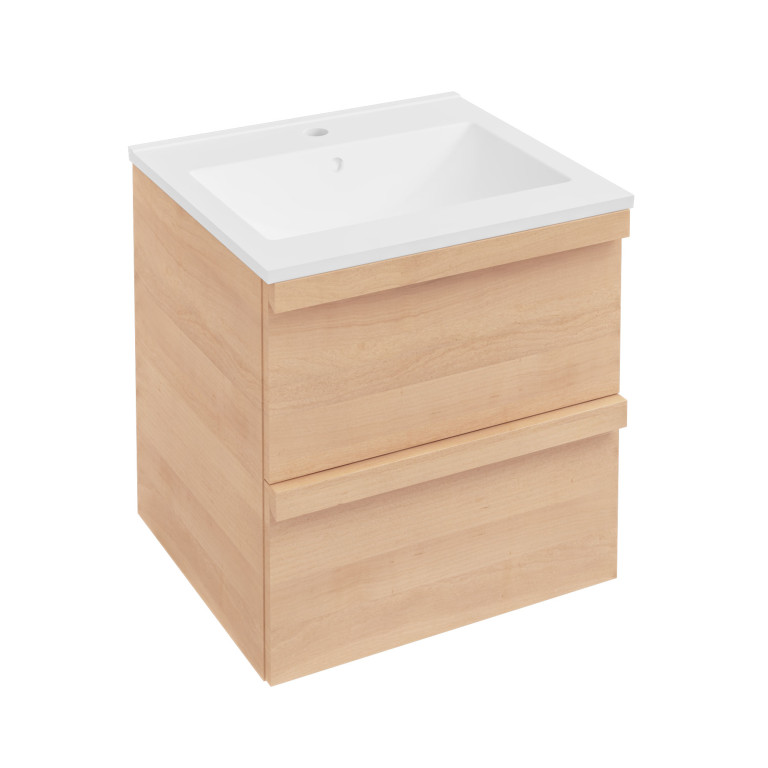 Ravensbourne 600 Wall Hung Drawer Unit only - Natural Oak (Basin & Tap Sold Separately)