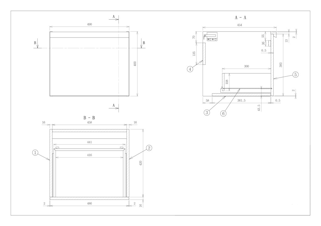 - 454mm (L) x 490mm (W) x 400mm (H)