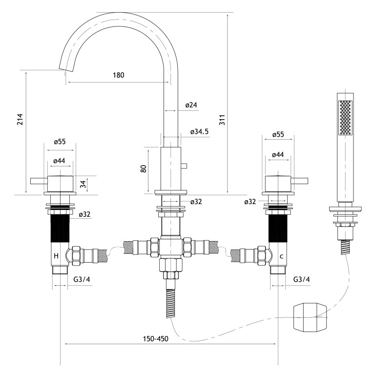 - 192mm (L) x 55mm (W) x 311mm (H)