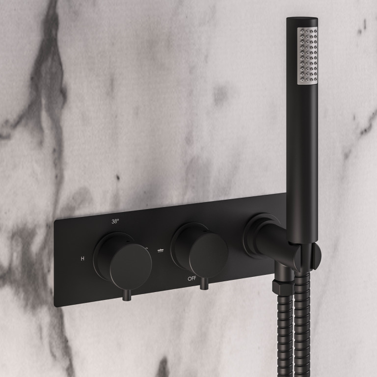 Download (0.23 MB)Meriden Two way Wall Mounted Thermostic Shower Valve with Hand set - Matt Black