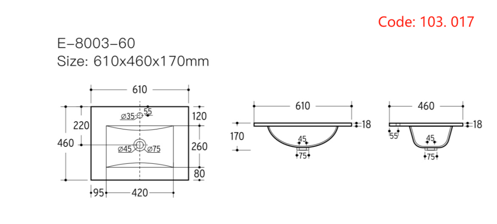 Universal 500 Basin only - White (Vanity unit & Tap Sold Separately)