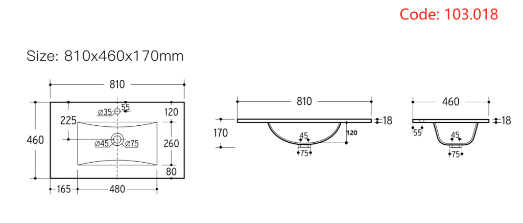 - 460mm (L) x 810mm (W)