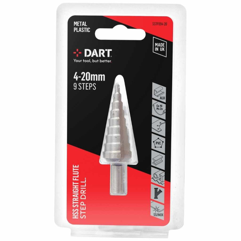 Download (0.13 MB)Precision engineered steel bits with straight tapered cutting edges allowing for de-burring or chamfering of the hole drilled. HSS Ground flute with split point for spot drilling without pre-centring. Suitable for use on sheet metal, stainless steel, steel, cast iron, aluminium, non-ferrous metals and plastic.