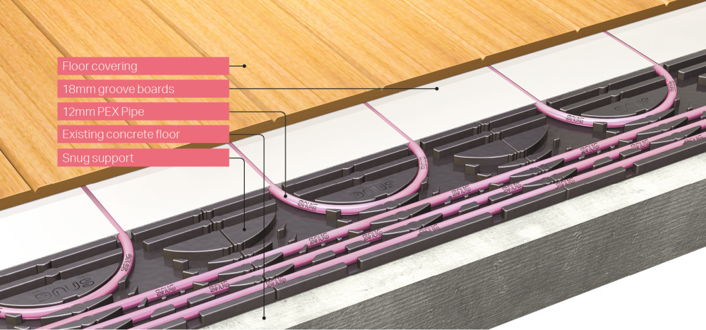 SNUG Ultra efficient low profile groove board 800mm X 600mm X 18mm for 150 centres for 12mm pipe, Designed to be laid on any flat level surface