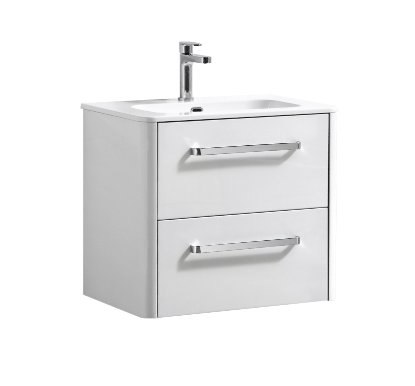 Suburb 600x395mm Two Drawer Wall Mounted Basin Unit in White Gloss