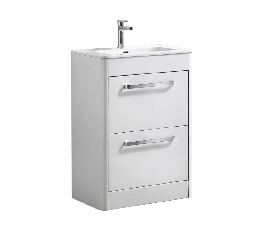 Suburb 600x395mm Two Drawer Floor Standing Basin Unit in White Gloss