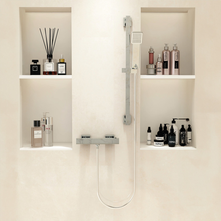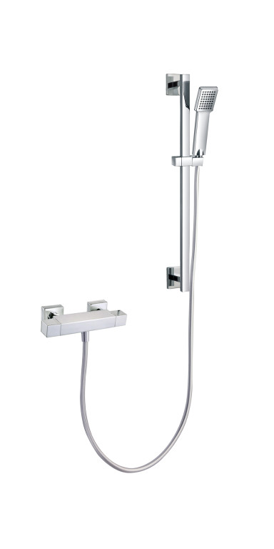 Bloque2 single outlet bar valve with Bloque slide rail, Dekka single function handset and smooth PVC hose