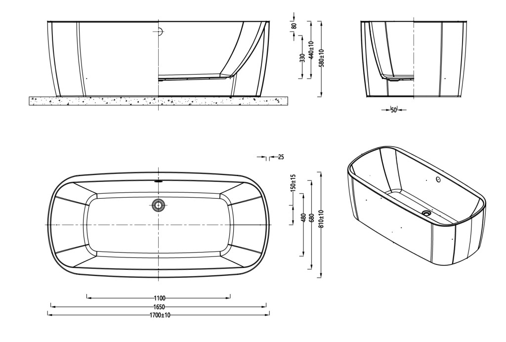 - Constructed using the finest 5mm acrylic lucite sheet, providing a bath offering comfort and excellent thermal retention