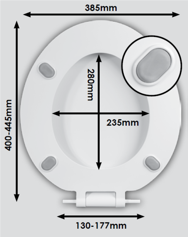 Wirquin White Sonata toilet seat and cover with plastic bottom fix hinges, naturally anti-bacterial thermoset material 2.7kg