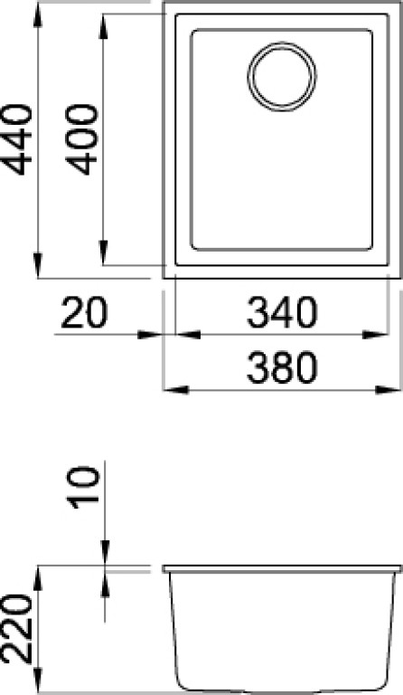 QUADRA 100 B, undermount only single bowl black granite