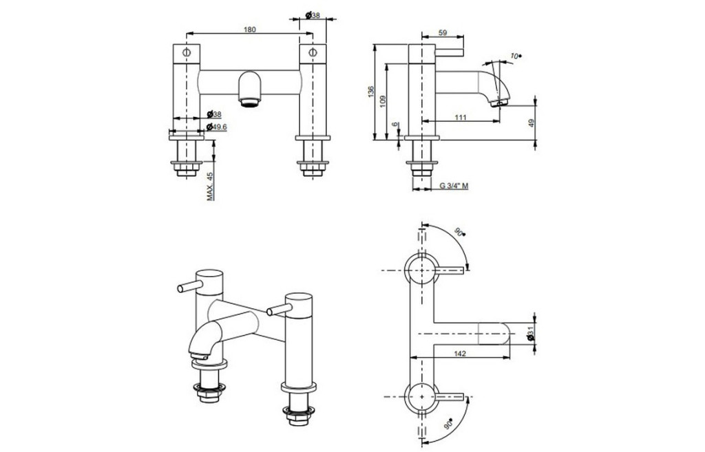- High Pressure Deck Mounted Black Bath Filler