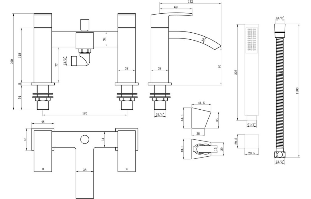 - Low Pressure Deck Mounted Silver Bath Shower Mixer